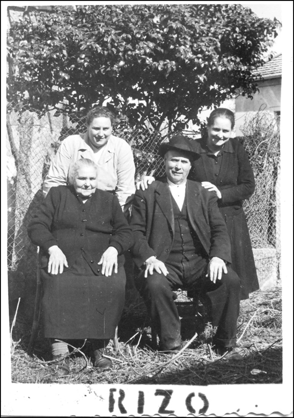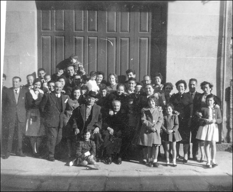 (Arriba pola dereita): Celsa ( unha das fillas do Barrancos, casada con Jose Rodríguez que tiña un comercio de louza na praza maior, tiña 2 fillos: Pepe que emigrou a Madrid e Evaristo, que seguiu no comercio de louza do pai )
