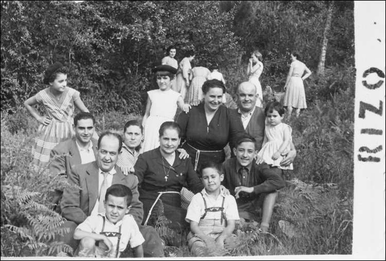 (Arriba pola esquerda ): Asunción, casada con Pepe Pereira, un dos fillos do Barrancos, que conducía un vello camión dos anos 40 ata os anos 80, con 2 fillos: Eduardo e Jose Ramón, tamén camioneiro.