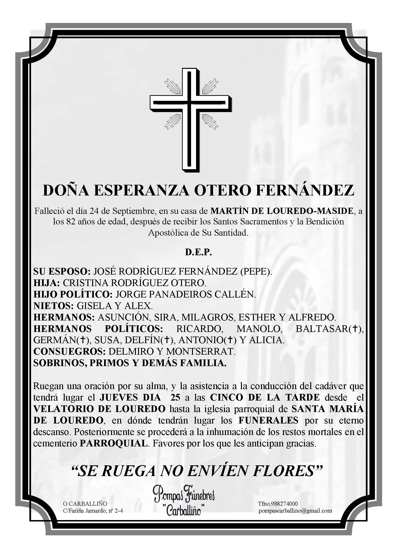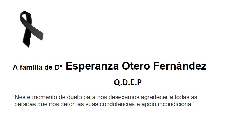 Agradecemento da familia de Dª Esperanza Otero Fernández