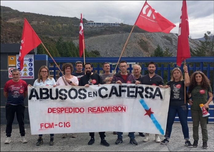 A Federación da Construción e Madeira da CIG evou a cabo hoxe un concentración diante das instalacións da empresa Canteras Fernández SL Elaboración (pertencente ao Grupo Cafersa) na nave Castrelos, en Casaio, para rexeitar o despedimento dun traballador que se negou a facer horas extraordinarias.