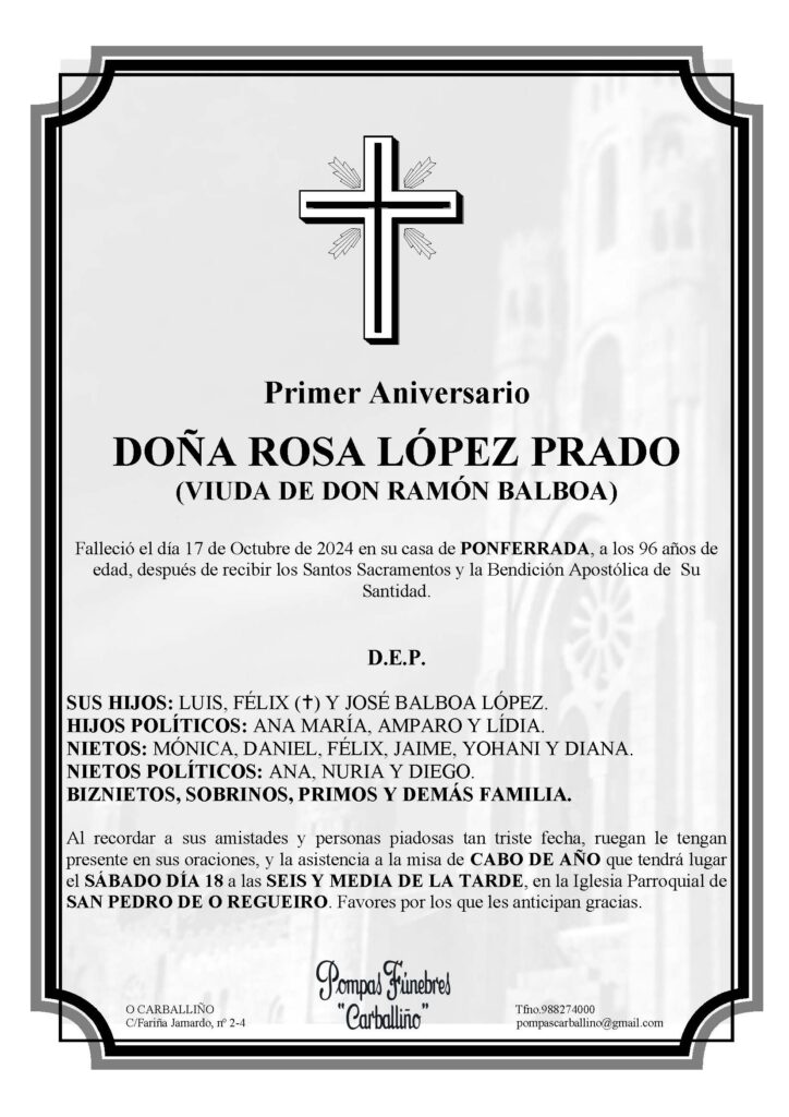 MISA de 1º Aniversario por Dª Rosa López Prado