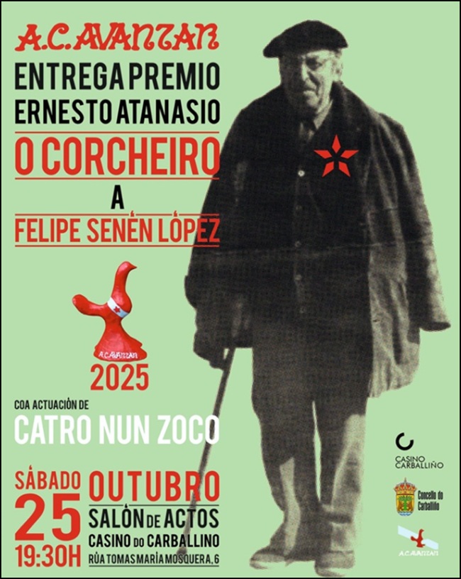 A asociación cultural A.C. Avantar ten o pracer de anunciar a entrega do Premio “O Corcheiro” a D. Felipe Senen López, en recoñecemento á súa traxectoria e labor.