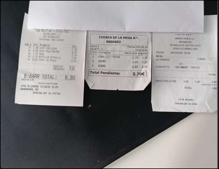 Ante esta situación, a uno, quizás por tradición cultural, le resulta molesto solicitar del camarero que nos especifique el importe de cada tipo de consumición- tapas, refrescos, cafés, vinos , etcétera- e incluso, a veces, nos queda la duda de si los cálculos mentales de aquel habrán sído correctos. Sobre todo, cuando consideramos que el precio que se nos ha indicado verbalmente, con dudas en el previo difícil cálculo mental nos parece exageradamente excesivo.