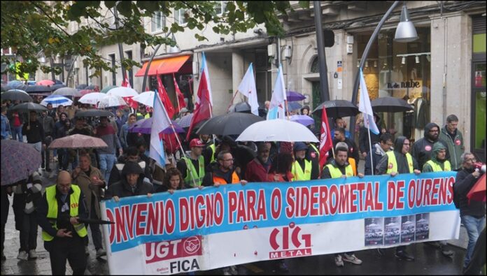O sector do siderometal da provincia de Ourense viviu hoxe a segunda xornada de folga das tres convocadas no mes de novembro para reclamar un convenio colectivo digno, tras o fracaso das negociacións mantidas coa patronal o luns. Centos de persoas traballadoras percorreron as rúas da cidade en defensa das súas condicións laborais, mobilizacións que repetirán mañá coincidindo co último día de paro previsto por agora.