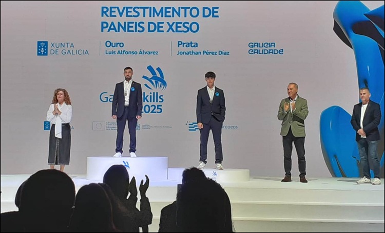 O mozo carballiñés *Jonathan Pérez Díaz, antigo alumno do Centro Educativo Vila do Arenteiro, vén de acadar a medalla de prata na especialidade de Revestimentos de Paneis de Xeso no campionato autonómico Galicia Skills 2025, celebrado esta semana.