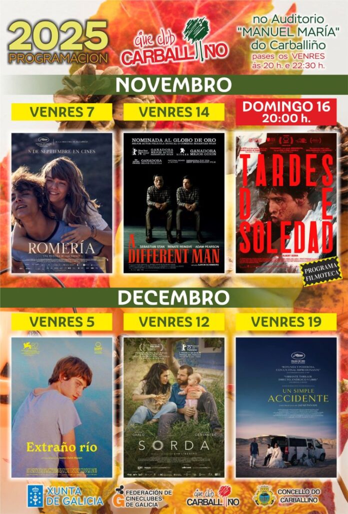 Cine Club Carballiño continúa no presente mes de novembro e no decembro vindeiro coa súa programación habitual dos venres e algunha proxección extra os domingos, cunha forte presenza neste caso do cinema español.