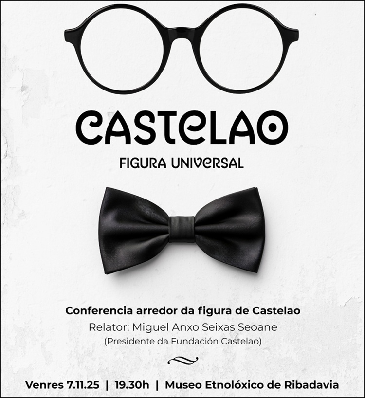 Ribadavia, 3 de novembro de 2025 – O Museo Etnolóxico de Ribadavia acollerá o próximo venres 7 de novembro de 2025 ás 19:30 horas unha conferencia ao redor da figura de Alfonso Daniel Rodríguez Castelao, un dos personaxes máis relevantes da cultura galega.