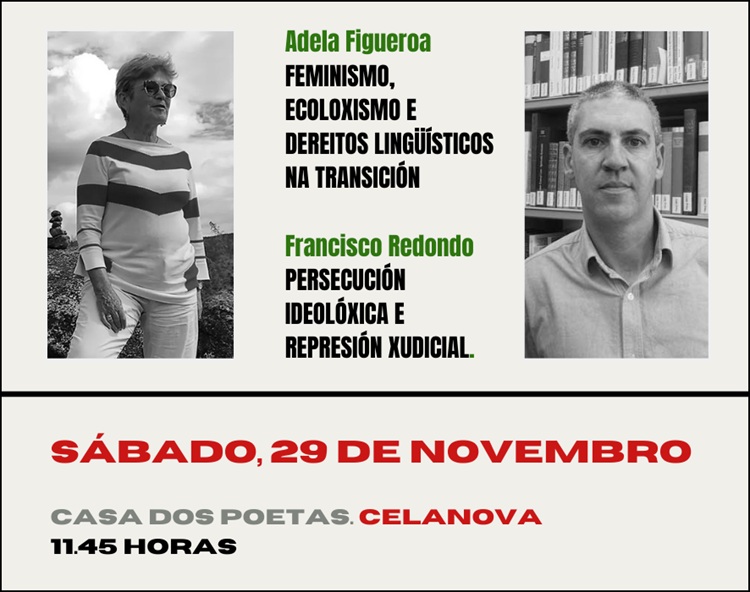 A activista Adela Figueroa Panisse, catedrática de Bioloxía, fundadora de ADEGA e da Asociación Socio-Pedagóxica Galega, abrirá a mañá cunha presentación do libro e un relato da súa experiencia nos movementos sociais da Transición, sinaladamente no ecoloxismo e na loita polos dereitos lingüísticos.