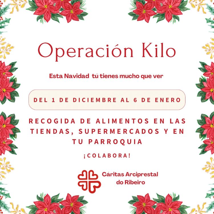Cáritas Arciprestal do Ribeiro abríu onte a campaña de Nadal, “Operación Kilo”, que se extenderá ao longo de todo o mes de decembro e continuará ata o 6 de xaneiro, Día de Reis.