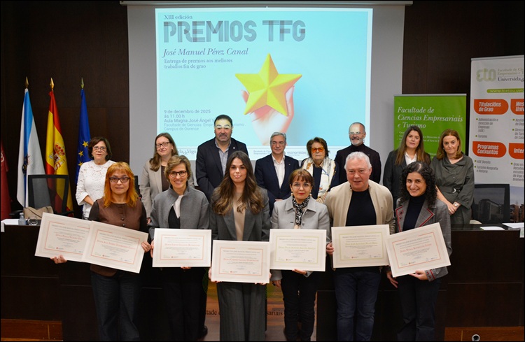 A Deputación de Ourense participou hoxe no acto de entrega dos Premios aos Traballos de Fin de Grao José Manuel Pérez Canal, un certame que recoñece a excelencia académica do alumnado da Facultade de Ciencias Empresariais e Turismo do Campus de Ourense.