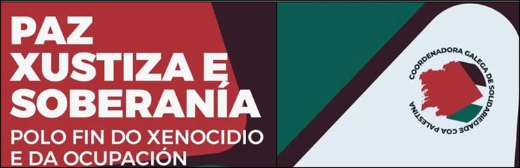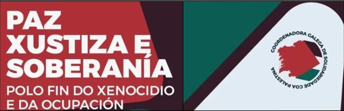 Convocatoria de concentracións cidadás baixo o lema “Paz, Xustiza e Soberanía. Polo Fin do Xenocidio e da Ocupación”.