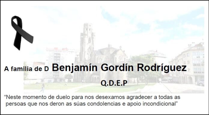 Agradecemento da familia de D Benjamín Gordín Rodríguez