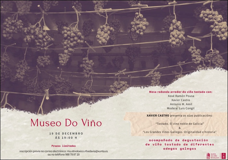 O próximo 19 de decembro ás 19:00 horas, o Museo do Viño de Galicia acollerá un encontro destacado en torno ao viño tostado, un dos produtos máis emblemáticos da tradición vitivinícola galega.