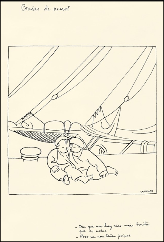 A mostra reúne facsímiles da Colección de Arte Afundación e debuxos do álbum Cousas da vida de Castelao, dos que pertencen á Colección de Arte ABANCA. Ademais, poderanse ver retratos fotográficos, caricaturas, debuxos e portadas de revistas.