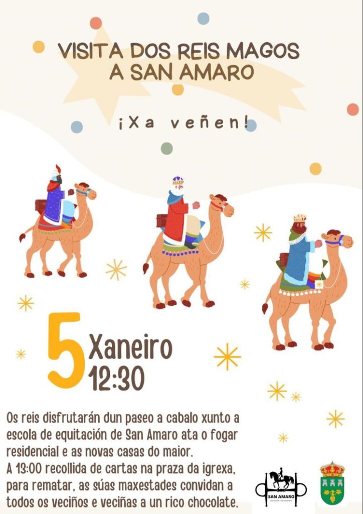 O Concello de San Amaro vén de elaborar para este mes de xaneiro unha programación especial con motivo da festividade de Reis, con actividades que se extenderán dende esta fin de semana ata o vindeiro luns.