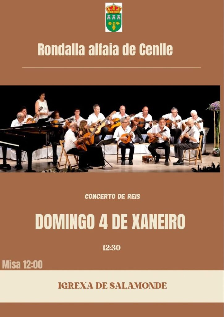 O programa comezará o domingo, día 4, coa celebración do ‘III Concerto de Reis’, que terá lugar na igrexa parroquial de Salamonde ás 12,30 horas. O recital musical corre a cargo da rondalla de corda ‘Alfaia’ de Cenlle unha vez rematada a misa dominical.