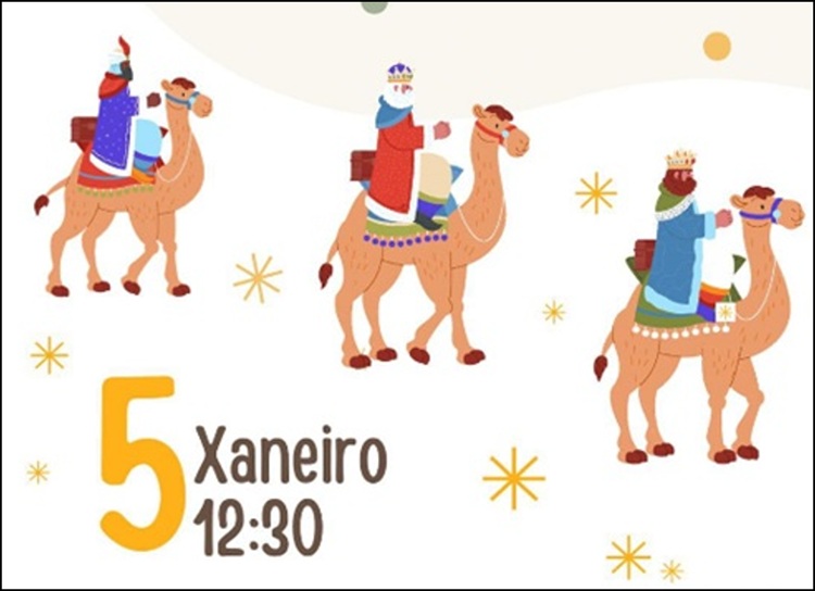 E a xornada máis esperada pola cativada do municipio será a do luns, día 5, coa saída da tradicional Cabalgata de Reis. Así, Melchor, Gaspar e Baltasar realizarán dende as 12,30 horas un paseo a cabalo coa Escola de Equitación de San Amaro, cun percorrido polo fogar residencial e as casas do maior ata achegarse, ás 13,00 horas, á praza da igrexa, onde recibirán ás nenas e ós nenos, escoitando as súas peticións e recollendo as súas cartas. Ao remate, as súas maxestades convidarán a toda a veciñanza a un chocolate quente.