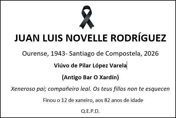 Os seus fillos César e Laura Novelle López; a súa familia elexida da Pobra do Caramiñal, amigos e persoas que os estimaron, comunican a súa triste perda e agradecen a todos aqueles que desexen honrar a súa memoria, a realización dun donativo destinado á Asociación Española Contra o Cancro.