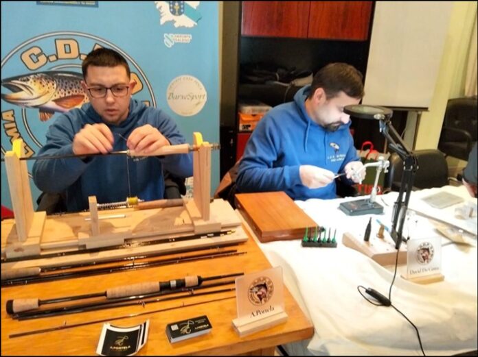 Puideron ver en directo como se fan as canas, moscas e tamén baixos para a pesca a mosca a seca e xa para rematar coa xornada fixose unha exhibición de lance con cola de rata na que puido probar calquera persoa dos presentes.