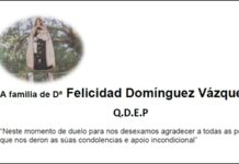Agradecemento da familia de Dª Felicidad Domínguez Vázquez