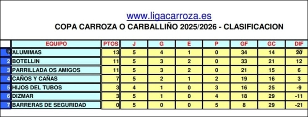 Liga Carroza: Resultados da 6ª xornada de Copa
