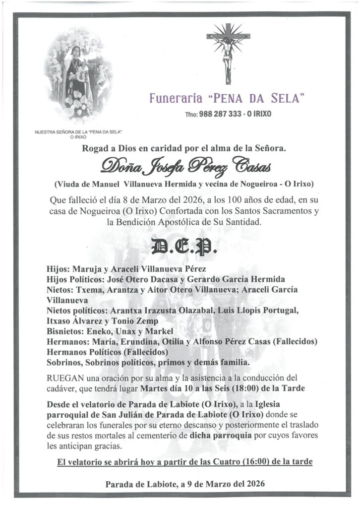 Esquelas Falecemento de Dª Josefa Pérez Casas 9 Marzo, 2026 FacebookTwitterWhatsAppLinkedinEmail TEATRO PRINCIPAL PROGRAMACIÓN NOVEMBRO TEATRO PRINCIPAL PROGRAMACIÓN NOVEMBRO ---------------------------------------------------------------------------------------------------------- TEATRO PRINCIPAL PROGRAMACIÓN NOVEMBRO TEATRO PRINCIPAL PROGRAMACIÓN NOVEMBRO A túa Familia non te esquece LOCALIZACIÓN: Premer na Imaxe PUBLICIDADE--------------------------------------------------------------------------------------------------- COMERCIAL ORCELLÓN COMERCIAL ORCELLÓN PRECASA: Ferretería e Materiales de construcción PRECASA: Ferretería e Materiales de construcción GRILL-CARBALLIÑO e OURENSE GRILL-CARBALLIÑO e OURENSE