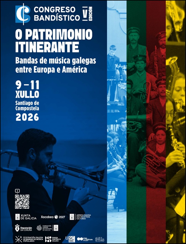 “O patrimonio itinerante: bandas de música galegas entre Europa e América” é o título escollido para un vindeiro congreso que reunirá a musicólogos, directores, compositores e intérpretes. O evento está organizado por Montserrat Capelán Fernández e Javier Gándara Feijóo desde a Universidade de Santiago, así como por Jorge González Rodríguez en representación da Federación Galega de Bandas de Música Populares. No congreso trazarase non só a relevancia das bandas no devir histórico e cultural de Galicia, senón que tamén se reflexionará sobre medidas de protección que urxe adoptar. Paralelamente, serán escoitados integrantes das propias formacións, cuxos testemuños posúen un recoñecido valor: músicos lonxevos, primeiras mulleres que entraron nas agrupacións ou antigos directivos e promotores. Así, xuntarase nun mesmo encontro a investigación musicolóxica coa actividade cotiá das bandas.