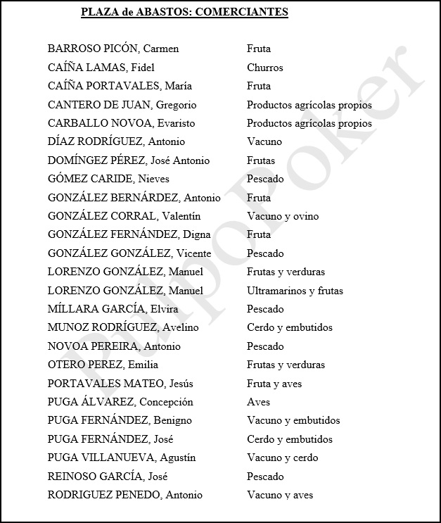 En 1.928 se adjudican las obras de la Plaza de Abastos a los contratistas Manuel Varela y Manuel Cores…En aquella época, los arbitrios (tasas) pagados por los puestos de los comerciantes allí establecidos, constituían una de las principales fuentes de ingresos para las arcas municipales.