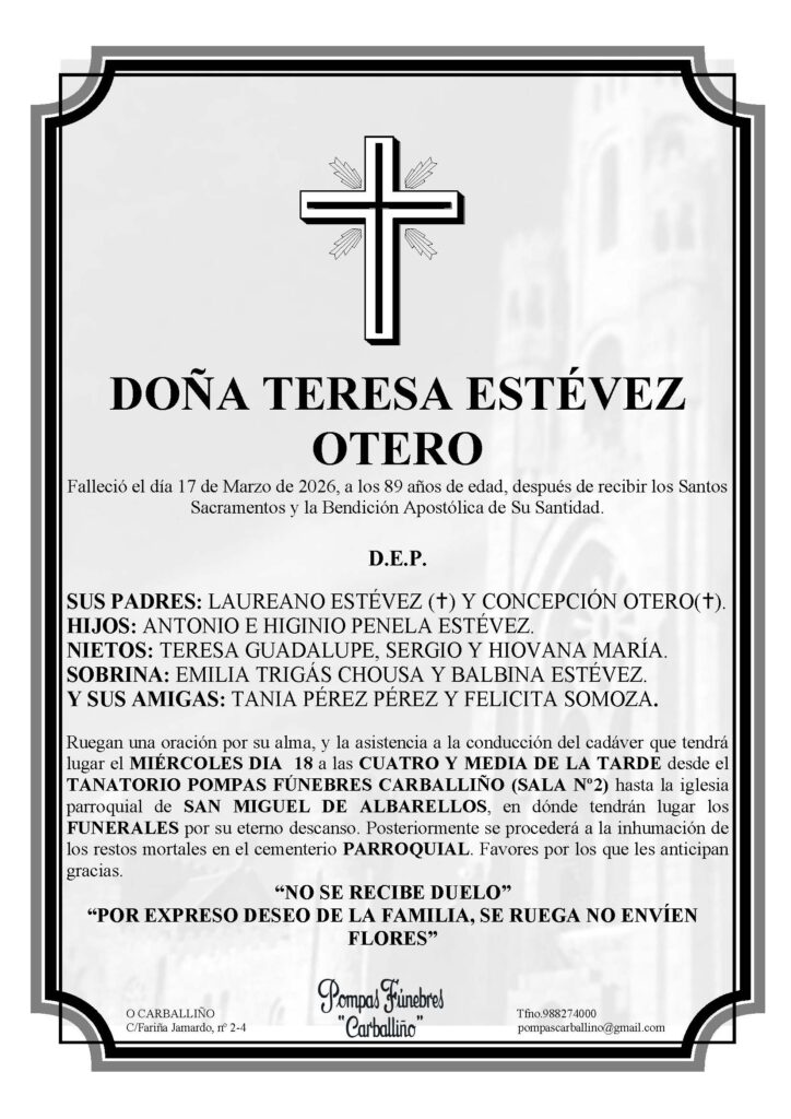 Agradecemento da familia de Dª Teresa Estévez Otero
