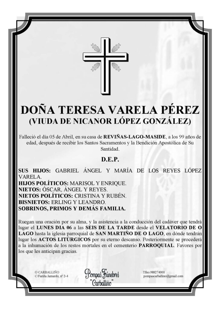 Falecemento de Dª Teresa Varela Pérez