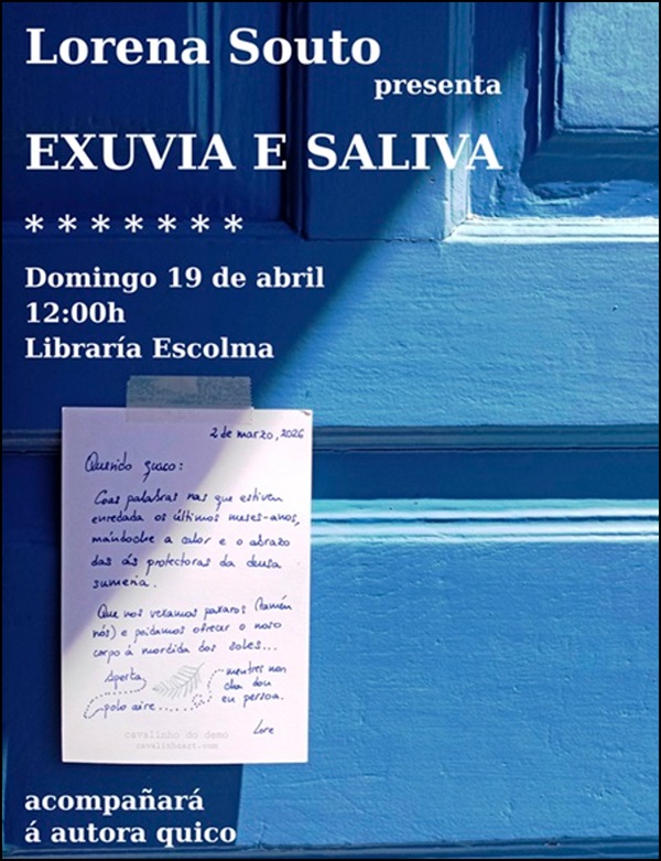 Asunto: Presentación do poemario Exuvia e Saliva de Lorena Souto, gañador do Premio da Crítica 2025