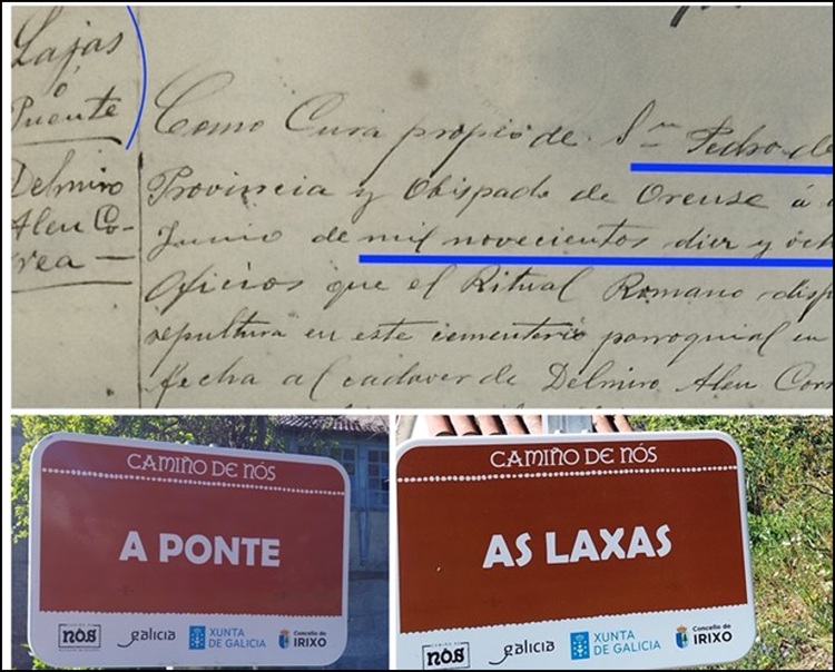 A todo isto hai que lembrar que a estrema entre os dous lugares, a principios do século XX, nos libros de casados, nacidos e mortos da parroquia de Dadín, a denominación que consta neles dá tamén a alternativa “Lajas o Puente”, que finalmente se reservou para A Ponte actual da parte do Campo. Detalle que se repite cando os membros da Xeración Nós en 1926, denantes de cruzar a ponte, nomean o lugar como “A Ponte”, non como “As Laxas”.