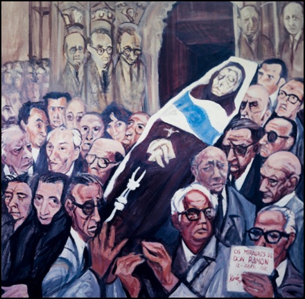 Como colofón, no podemos olvidar Os milagres de Don Ramón, obra también de Xosé Conde Corbal. Se trata de un acrílico sobre tabla que representa el féretro descubierto mostrando a don Ramón con hábito franciscano, y cubierto el pecho con la bandera de Galicia, que la había puesto Xaquin Lorenzo como el mismo había constatado en alguna ocasión. Tanto los que portan el ataúd, como los que asisten, al igual que las figuras que se corresponden con los fustes de las columnas del templo románico, se identifican perfectamente con intelectuales gallegos como Blanco Amor, Cuevillas, Alonso Montero, Ferrin, Maribel Outeiriño o Tovar entre otros.