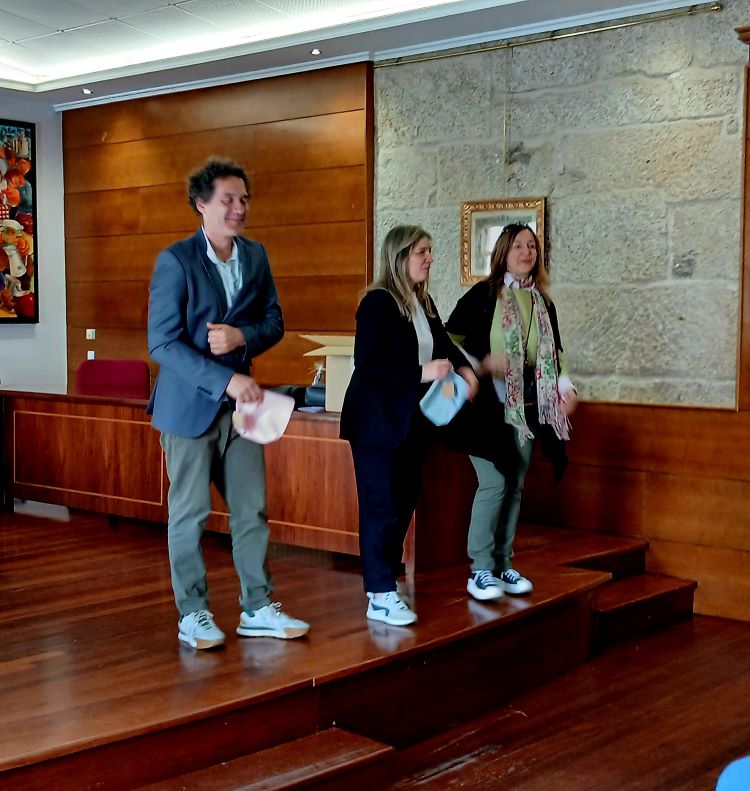 As mozas e mozos alemáns chegaron o pasado martes e na mañá de hoxe, xunto cos compañeiros e compañeiras do centro de ensino carballiñés e a súa directora, Almudena Mosquera, foron recibidos no salón de plenos da Casa do Concello polo alcalde en funcións, José Castro, e a concelleira de Educación, Lorena Castro, que saudaron e agasallaron cun pequeno obsequio aos participantes neste intercambio.