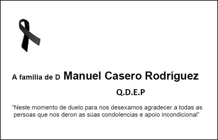 Agradecemento da familia de D Manuel Casero Rodríguez