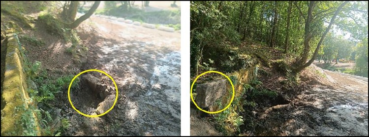 - – A rotura do muro que forma a represa da mina, afectando a este elemento patrimonial.