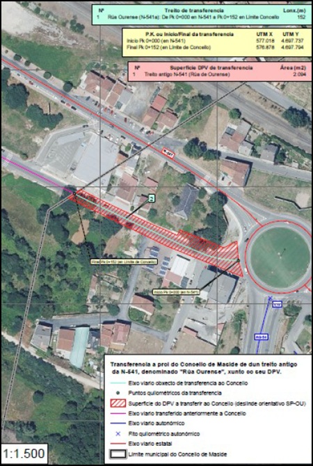 A transferencia do citado treito da rúa Ourense a prol do Concello de Maside tramítase de acordo co previsto na Lei 8/2013, do 28 de xuño, de estradas de Galicia, que establece a súa aprobación mediante decreto da Xunta, por proposta da Consellería de Vivenda e Planificación de Infraestruturas como competente en materia de estradas, e logo do acordo entre as administracións implicadas.
