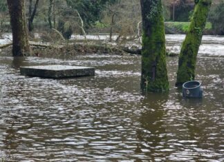 As fortes precipitacións elevan o caudal e o nivel do río...
