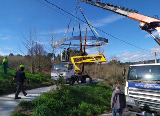Instalación da escultura de Fernando Celta “DANZA DA ÁRBORE”