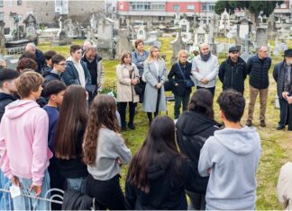 Os escolares lembran a Eduardo Blanco Amor na tradicional ofrenda floral...