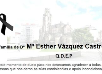 Falecemento de Dª Mª Esther Vázquez Castro (69 anos)