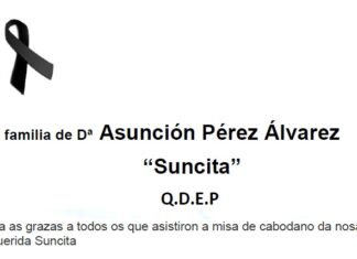 Agradecemento da familia de Dª Mª Asunción Pérez Álvarez “Suncita”