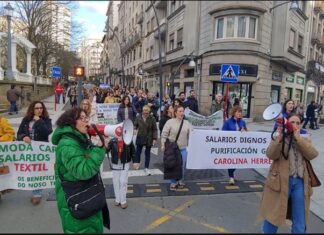 Persoal de Textil Lonia mobilízase polas rúas de Ourense en demanda...