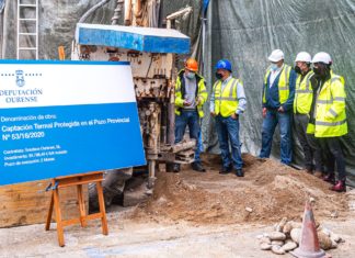 Comezan os traballos da captación termal protexida no interior do Pazo...