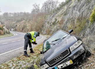 A xeada provoca unha saída de vía dun vehículo en Os...