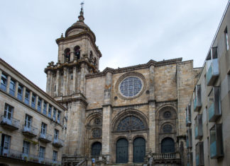 O presidente do Inorde recibe, na escalinata da Catedral de Ourense, aos turoperadores do fam trip pola Vía da Prata