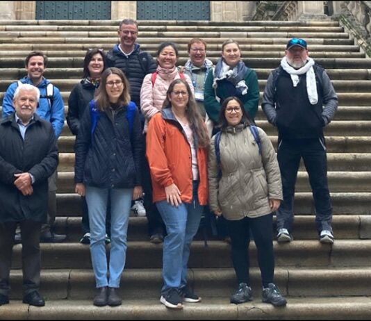 O presidente do Inorde recibe, na escalinata da Catedral de Ourense, aos turoperadores do fam trip pola Vía da Prata