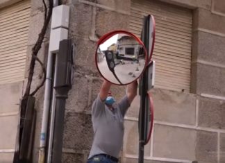 O concello instala os espellos na entrada ó Barrio de Flores...
