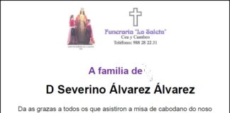 Agradecemento da familia de D Severino Álvarez Álvarez