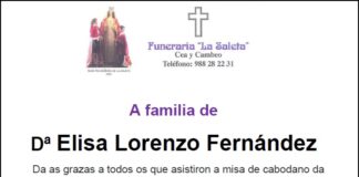 Agradecemento da familia de Dª Elisa Lorenzo Fernández
